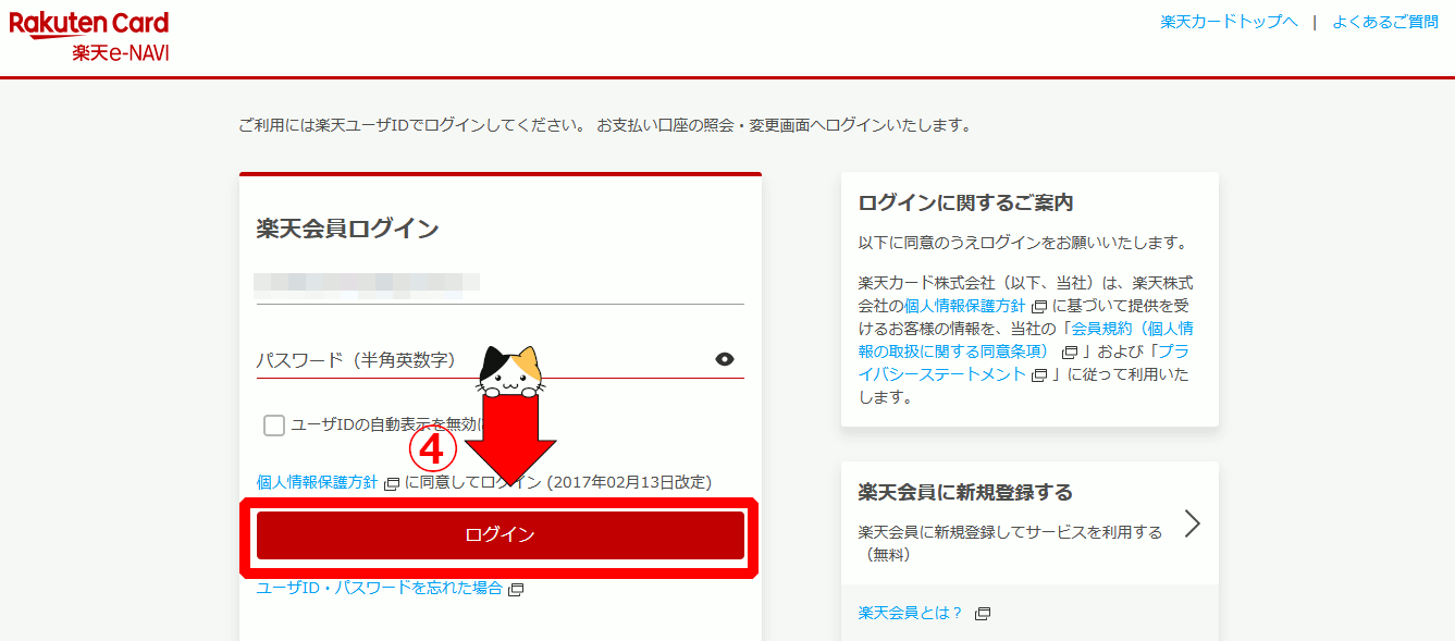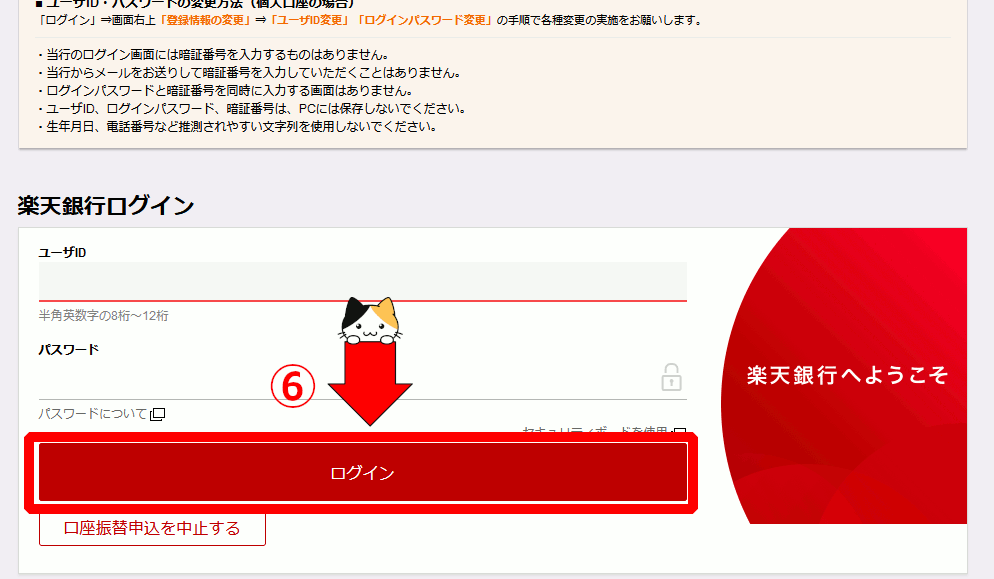 ④楽天銀行にログインします。